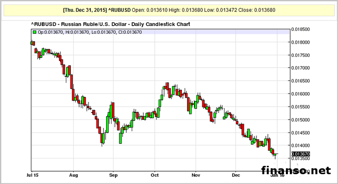 Прошедший не так давно год финансовая единица завершила на небольших показателях. Традиционное снижение стоимости рубля, что свойственно окончанию года, послужило причиной рекордного падения валюты России. По состоянию на вчерашний вечер, на конец минувшего года рубль России упал до наиболее сниженного показателя за прошлый год. На данный момент времени российский рубль стоит примерно 0,0137 доллара Америки. Мировые средства массовой информации пишут, что президенту России в ближайшем будущем предстоит пережить весьма сложный период. По всей видимости, падение цены национальной финансовой единицы не предполагает положительные последствия для московского Кремля. Подробностями интересовались корреспонденты информационно-аналитического издания «Украина сегодня: Finanso.net». По сообщениям портала по экономике «Биржевой лидер», закончил уходящий год рубль России падением цены. После серьезного снижения стоимости в среду, в границах продаж четверга финансовая единица РФ предприняла очередную попытку к восстановлению. Границы изменения цены в последний день года был серьезным. Отдел аналитики брокерской компании TurboForex заявляет, что 31 декабря цена российской валюты в отношении к доллару Америки располагалась в границах ценовых уровней в 0,13472, 0,13680 доллара США. Для государства в целом подобные сниженные показатели цены нацвалюты никаких положительных последствий не предполагали. РФ, серьезно пострадавшая от снижения цены нефти, быстро погружается в рецессию. Личными размышлениями по поводу влияния дешевой валюты на процессы в экономике России в публикации для немецкого издания Die Welt делится финансовый редактор журнала Франк Штокер. В публикацию под названием «0,0137 доллара – Путин переживает настоящий кошмар в связи с падением рубля» журналист сообщает: граждане России получили презенты на Рождество до наступления самого праздника. И хотя нам прошлого жаль, худшее впереди?В этом году обстановка в экономике России может сильно ухудшиться. Владимир Осаковский, представляющий Bank of America Merrill Lynch, склонен полагать: если нефтяная цена в будущем будет снижаться, валовой внутренний продукт страны может пострадать еще сильнее. При данных цены в 50 долларов за баррель результатом года для РФ может стать нулевой экономический рост. При этом показатель в 40 долларов за единицу поставки станет причиной падения общего уровня экономической производительности примерно на 1,5 процента. |