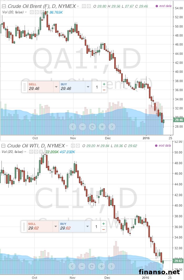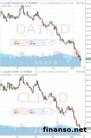 Специалисты российского «Газпрома» на фоне явно просевшей 18 января нефтяной стоимости марки Brent ниже уровня в 29 долларов уменьшили вслед за специалистами остальных инвестиционных банков прогнозы по цене этой марки сырья на нынешний год на 12 долларов США. Более детально прогноз по нефтяным котировкам на этот год, подготовленный специалистами «Газпромбанка», изучали журналисты информационно-аналитического издания «Украина сегодня: Finanso.net». Как стало известно журналистам информационно-аналитического издания по экономике и предпринимательству «Биржевой лидер», оказывается, в российском «Газпромбанке» решено было пересмотреть прошлый прогноз по котировкам нефти – по самому свежему прогнозу, цена сырья марки Brent в нынешнем году обязана составить как минимум 50 долларов, как ранее и прогнозировалось. Параллельно с этим они уверены: курс российской валюты к концу этого года обязан укрепиться до уровня в 72,3 рубля за один доллар. Нефти добывается слишком много.Специалисты Евгения Дышлюк и Александр Назаров отмечают в подготовленном ими специальном прогнозе: избыток предложения нефти на общемировом рынке все еще сохранен, все запасы готового к реализации сырья и дальше будут столь же серьезными. Кроме того, никуда не пропадут имеющиеся в настоящее время переживания относительно замедления скорости экономического роста Китая. В связи с этим за первые шесть месяцев текущего года цена «черного золота» будет довольно низкой. СМИ также пишут и о том, что в конце минувшего 2015 года в США уровень запасов сырой нефти явно сильно превышал среднее за последние лет пять значение, а по данным опроса, проведенного агентством Bloomberg, на минувшей неделе эти запасы должны были стать выше еще примерно на 2 миллиона баррелей. Параллельно с этим темпы, с которыми в Штатах снижается добыча сланцевой нефти, не считаются столь серьезными, чтобы оказать серьезное влияние на баланс между предложением и спросом на общемировом рынке. «Общие результаты проведенного заседания ОПЕК, прошедшего в конце 2015 года в столице Австрии, оказали на котировки дополнительное давление, потому что государствам картеля так и не удалось договориться по поводу снижения нефтяной добычи», – отмечает брокерская компания WorldForex. |