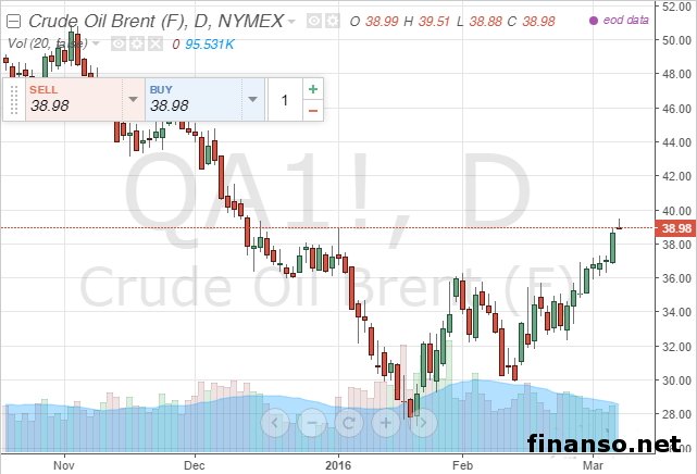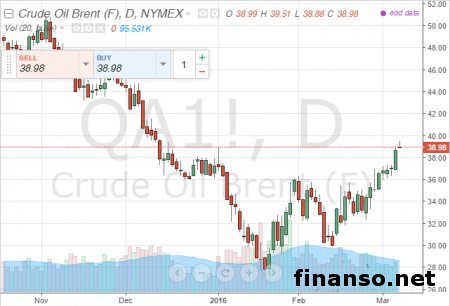 В рамках продаж за 7 марта на бирже ICE в английском Лондоне стоимость барреля североморской нефти марки Brent преодолела уровень в 39 долларов. У максимальной отметки на 6:52 по МСК стоимость майских фьючерсов марки Brent была на уровне в 39,5 доллара. После этого произошел незначительный отскок, уже к 8:20 по МСК Brent продавалась у уровня в 39,4 доллара. Во время открытия продаж баррель Brent обошелся в 38,9 доллара, прошлые продажи были закрыты у уровня в 38,72 доллара США. Исходя из этого, на 8:20 по МСК баррель нефти марки Brent добавил в стоимости 0,7 доллара, или примерно 1,8 процента. В последний раз стоимость выше уровня в 39 долларов выросла в начале текущего года. Дальше 39,5 доллара котировки нефти не повышались с минувшего декабря. На этом акцентируют внимание специалисты брокера-компании SFX Markets. Подробностями интересовались корреспонденты информационно-аналитического издания «