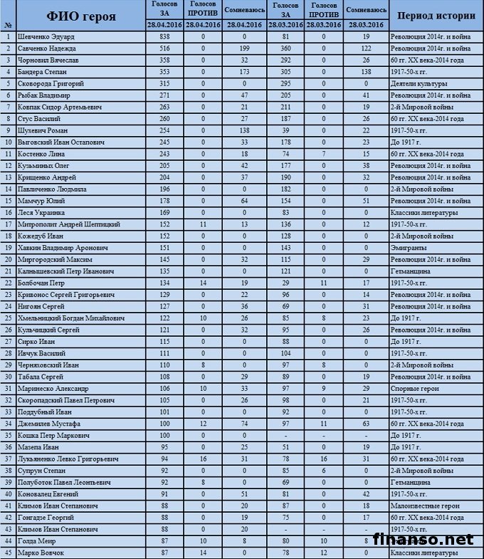Heroes.profi-forex.org обозначил ТОП голосования по героям УкраиныКатегория: В мире