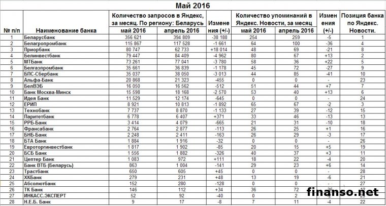 Какие банки Беларуси стали самыми популярными в мае 2016 годаКатегория: В мире