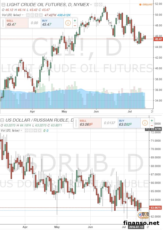 В настоящее время российский рубль все больше отвечает не на котировки нефти, а конкретно на внутрироссийские факторы. Более детально о том, от чего сейчас в основном зависит курс национальной валюты России, узнавали корреспонденты информационно-аналитического издания «Украина сегодня: Finanso.net».Как стало известно журналистам информационно-аналитического издания по экономике и предпринимательству «Биржевой лидер», национальная валюта России в первый раз показала основные признаки независимости от нефтяных цен. Несмотря на весьма нервное состояние рынка нефти в общем после референдума в Британии, а также на связанное с этим ценовое падение нефти, рубль ощущает себя вполне уверенно. Говоря точнее, в середине этого месяца курс российской нацвалюты вырос к максимуму за последние месяцы – уровню чуть меньше 63 рублей за один доллар и немного меньше 70 рублей за каждый евро. В то же время цена нефтяного барреля марки Brent достигла по размеру 47 долларов – с июня этот бренд и дальше активно падает в стоимости: у пикового уровня цена нефти достигала уровня в 53 доллара. Нефть упала по цене в последний месяц примерно на 11 процентов, снизившись от уровня в 52,86 доллара до ступени в 47. При этом российский рубль себя ощущает в подобной обстановке весьма уверенно. В то же время для единой евровалюты и американской минувшие семь дней завершились по-разному: если долларовый курс стал выше примерно на 68 копеек, до уровня в 33,51 рубля, то еврокурс просел ровно на 3 копейки – до уровня в 69,9 рубля. Как говорят специалисты брокерской компании PrimeTime Finance, российская валюта вполне наглядно показала: ее курс может идти выше без значительных прыжков цен сырья. Здесь с первого взгляда может сформироваться впечатление, будто рубль укрепляется, несмотря на здравый смысл, без причин, но это не совсем так – сейчас на курс нацвалюты оказывают влияние так называемые внутрироссийские факторы, которые неожиданно оказались более мощными, чем внешнее давление. Причина укрепления рубля связана с периодом выплат дивидендов – эксперты.В этом уверены специалисты. Весь сейчас в стране продолжается период получения дивидендов, которые фирмы выплачивают акционерам. Юрий Кравченко, эксперт инвестиционной фирмы «Велес Капитал», напоминает: цена на нефть опускалась в последний раз ниже уровня в 47 долларов в первую половину мая нынешнего года, и в таком случае американский доллар стоил в границах 65-66 рублей. |