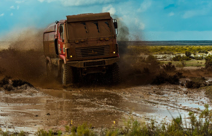 Седьмой этап был самым продолжительным с начала гонки – для грузовиков его протяженность составила 369 километров. На нем было запланировано несколько скоростных участков, но хватало и «засад», к тому же ситуацию серьезно осложнил сильный дождь. Кроме того, были и закрытые для автомобилей техпомощи зоны, в которых необходимый ремонт и техобслуживание должны были выполнять водитель со штурманом, – начиная от обработки автохимией, используя специальную пасту для рук, до сложных работ с помощью специального инструмента. Именно в такой зоне экипаж второй команды ВАЗ Александра Василевского попал в глубокую промоину и повредил ходовую часть. Ему на помощь отправился третий экипаж МАЗ Алексея Вишневского. Благодаря взаимовыручке им удалось закончить тяжелый этап, который оказался не по зубам некоторым командам. Экипаж Вязовича на финише этапа был шестым, отстав от победителя Тони ванн Генугтен из команды Iveco на 9 минут 11 секунд. В общем зачете команда МАЗ Вязовича сохранила третье место. Лидирует по-прежнему команда КАМАЗ-Мастер под руководством Эдуарда Николаева, которая на 7-м этапе показала третий результат, проиграв лидеру 4 минуты 54 секунды. |
