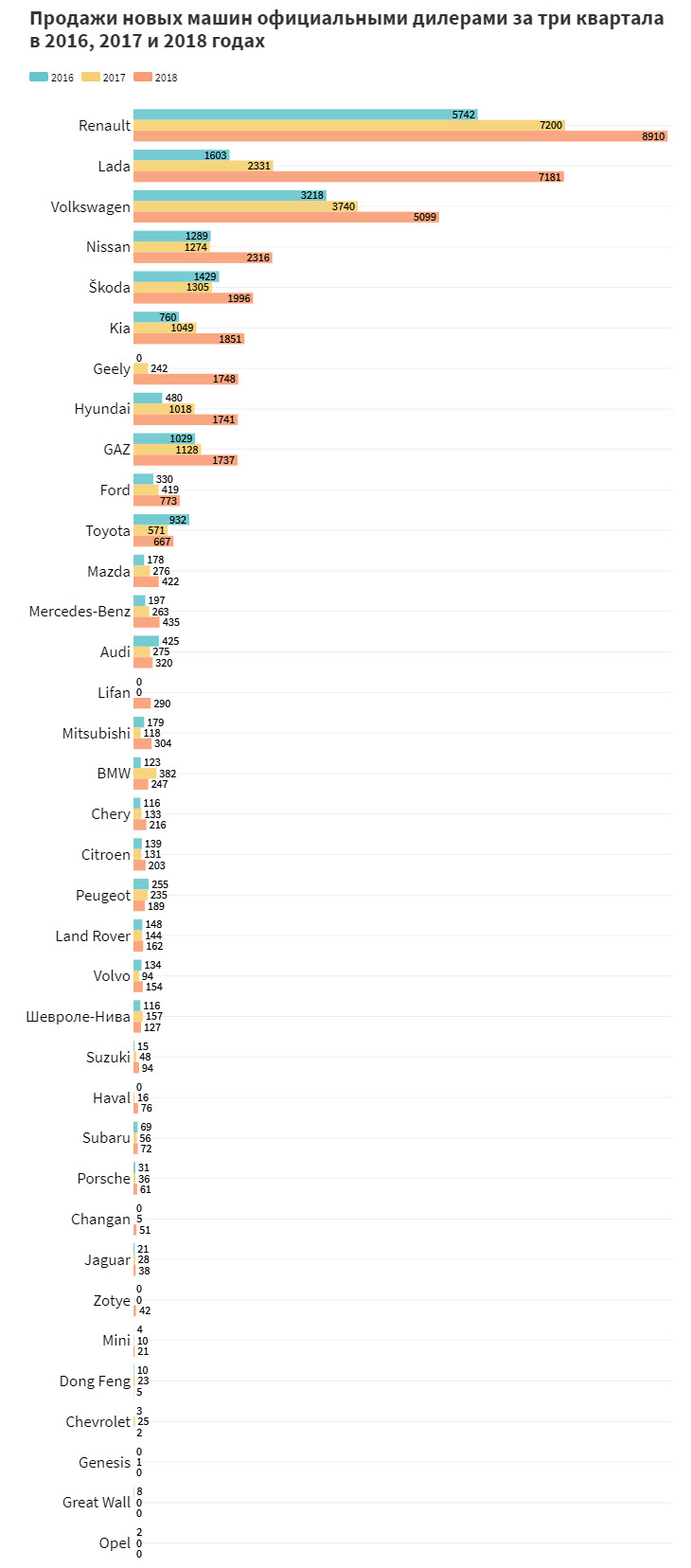 Многие производители нарастили продажи своих автомобилей в Беларуси. Так прирост продаж Renault за год составил 1,7 тысячи авто. Если в 2017 году было реализовано 7,2 тыс. шт., то в 2018 году – 8910 шт. Это лидер белорусского рынка новых легковых авто. Буквально взлетели продажи российской марки «Лада». В 2018 году было продано 7181 шт., тогда как годом ранее – 2331 шт. Второе место по итогам 2018 года. На третьем месте по количеству продаж на белорусском рынке немецкий производитель VW (5099/3740 – 2018/2017). Далее идут японский Nissan (2316/1274 – 2018/2017) и чешская Skoda (1996/1305 – 2018/2017). Шестое место у южнокорейского Kia (1851/1049 – 2018/2017), на седьмом производитель из Китая Geely. Тут следует отдельно отметить ошеломляющий прирост продаж китайской марки. Если в 2017 году было продано всего 242 авто, то в 2018 году – 1748! Невероятный рост, который поясняют программой льготного кредитования. На 8-м месте корейский Hyundai (1741/1018 – 2018/2017), на 9-м российский GAZ (1737/1128 – 2018/2017), замыкает ТОП-10 успешных продавцов на белорусском рынке американский Ford с показателем 773 авто в 2018, 419 авто в 2017 году. По лидерам продаж можно сложить такое представление – особой популярностью пользуются автомобили бюджетного класса и ближе к среднему, потому что они доступны в цене, экономичны и не бьют по кошельку во время плановых и ремонтных работ. Покупатели предпочитают приобретать автомобили у официальных представителей и дилеров, ведь они предлагают хорошие программы кредитования и лизинга, а также предоставляют фирменное обслуживание с использованием качественного инструмента, хорошей автохимии и заменой незамерзайки, что актуально в преддверии зимнего сезона. По материалам сайта www.foerch.by |