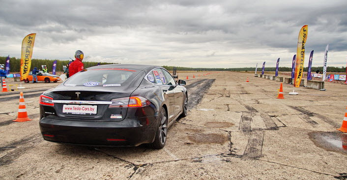 Благодаря наличию двух емких батарей Tesla Model S P100D имеет мощность, эквивалентную 770 л.с. Не каждый автомобиль с двигателем внутреннего сгорания может похвастаться такой мощью. Для удобства водителя Tesla Model S P100D оснащается автопилотом. Во время соревнований по дрегрейсингу он не нужен, тут все зависит от молниеносной реакции водителя, а вот при загородных поездках очень даже помогает. Запас хода у Tesla Model S P100D достаточный – на одном заряде можно проехать от Минска до Гомеля. К тому же рядом с Бобруйском работает станция быстрой зарядки. Долго ждать не придется, до 80% батарея зарядится быстро, но на зарядку остальных 20% уйдет больше времени. Впрочем, не обязательно ведь заряжать до максимума. Tesla Model S P100D имеет хорошую шумоизоляцию. Водителю и пассажирам в салоне не мешают звуки извне при любой скорости движения. Стартует электрокар без особой подготовки. В отличие от автомобилей с ДВС, для Tesla Model S P100D достаточно своевременной обработки растворителем ржавчины, иногда использовать очиститель тормозов, и электрокар будет готов к гонке. И все – автомобиль готов к старту! Электрокар настолько хорошо изготовлен, что его для участия в гонке даже не нужно переобувать в специальные шины, а если включить особый режим, автомобиль получит дополнительное ускорение. Только не забудьте, что этот режим нужно активировать только при прогретом моторе. Полный привод и тонкие настройки исключают пробуксовку колес, предотвращая аварийные ситуации и обеспечивая лучшую управляемость. Минус у Tesla Model S P100D перед автомобилями с ДВС все-таки есть. Чтобы электромотор обеспечил максимальную эффективность, его нужно прогреть, а на это будет израсходована определенная часть заряда – чем сильней она будет разряжена, тем худшее время электрокар покажет на финише. По материалам сайта www.foerch.by |